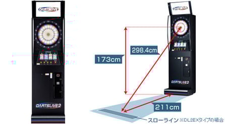 マシン上部のモニターまで含めると、高さは約2.5メートル(DARTSLIVE2の場合)ほどになります。